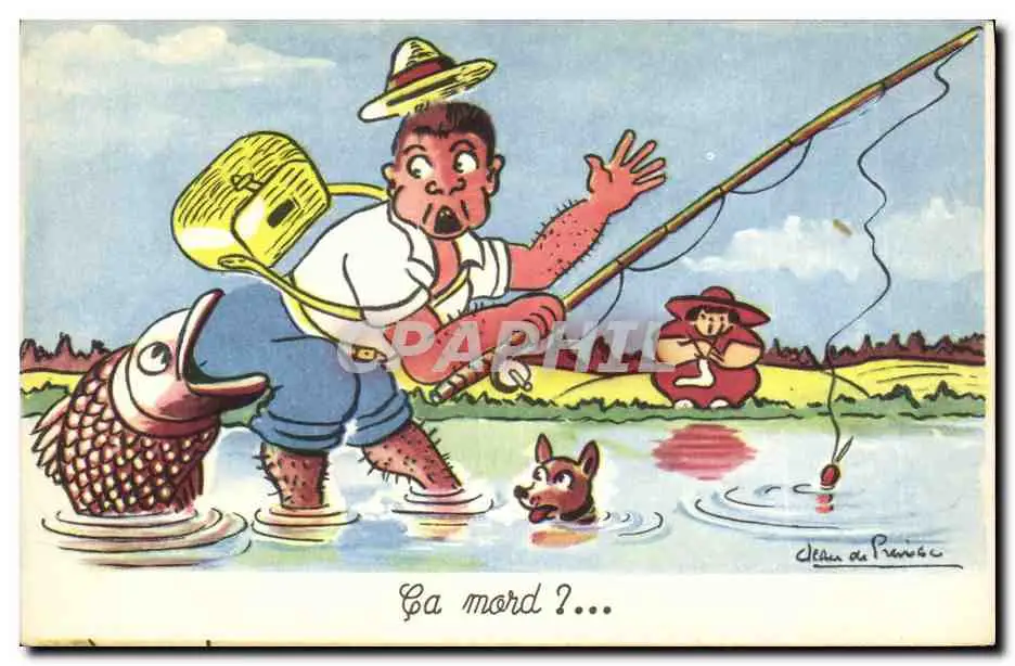Cartes postales Peche Pecheur Ca mord ? Poisson Chien