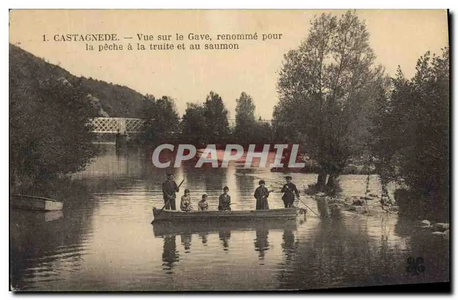 Cartes postales Peche Pecheur Castagnede Vue sur le Gave renomme pour la peche a la truite et au saumon
