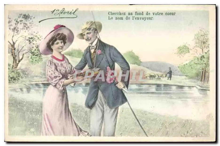 Cartes postales Peche Pecheur Femme 1er Avril