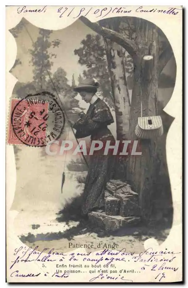 Cartes postales Peche Pecheur Femme Patience d&#39ange