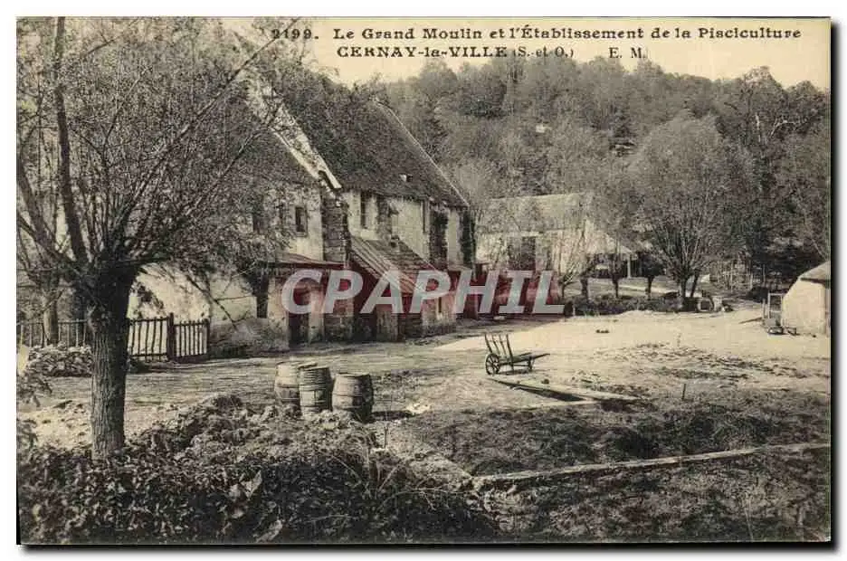 Cartes postales Peche Pecheur Le grand moulin et l'etablissement de la pisciculture Cernay la Ville