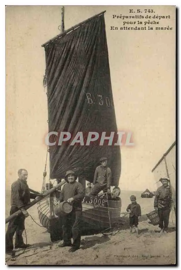 Cartes postales Peche Preparatifs de depart pour la peche En attendant la maree
