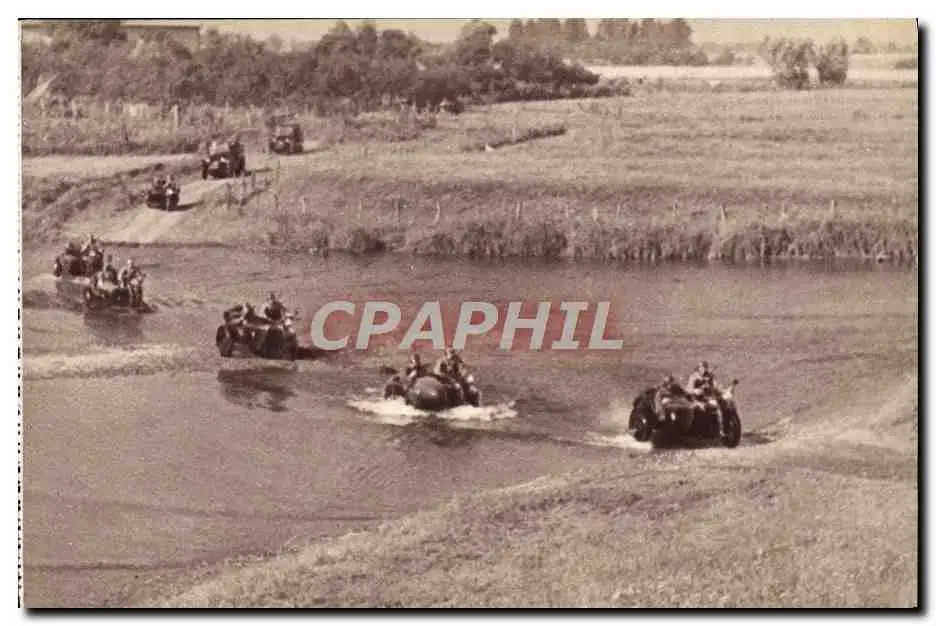 Cartes postales Peloton Moto Passant un Gue Militaria