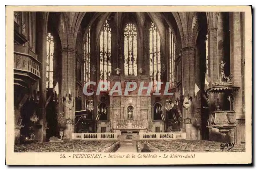 Cartes postales Perpignan Interieur La Cathedrale Maitre Autel