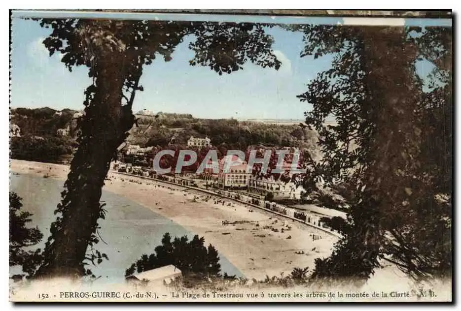 Cartes postales Perros Guirec La Plage de Trestraou Vue a Travers les Arbres de la