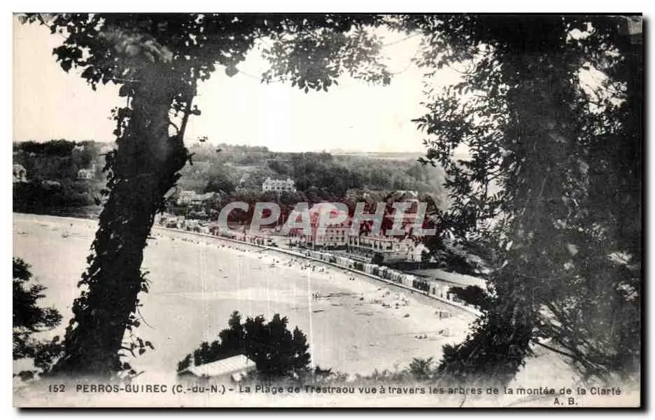 Cartes postales Perros Guirec La Plage de Trestraou vue a travers les arbres