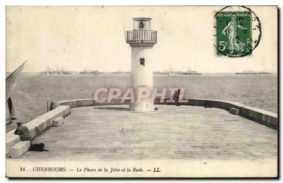 Cartes postales Phare Cherbourg Le phare de la jetee et la rade Bateaux
