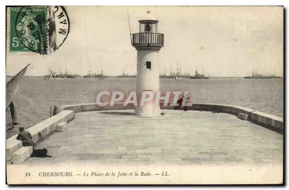 Cartes postales Phare Cherbourg Le phare de la jetee et la rade Bateaux