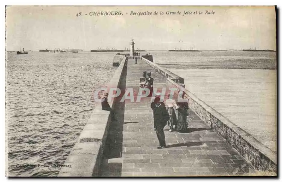 Cartes postales Phare Cherbourg Perspective de la grande jetee et la rade Bateaux