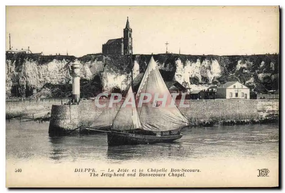 Cartes postales Phare Dieppe La jetee et la chapelle Bon Secours