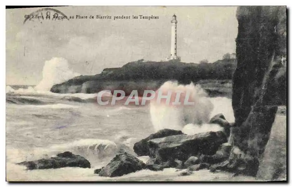 Cartes postales Phare Effet de vagues de Biarritz pendant les tempetes