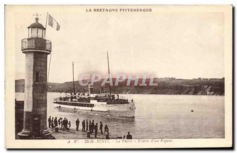 Cartes postales Phare Entree d'un vapeur Binic Bateau