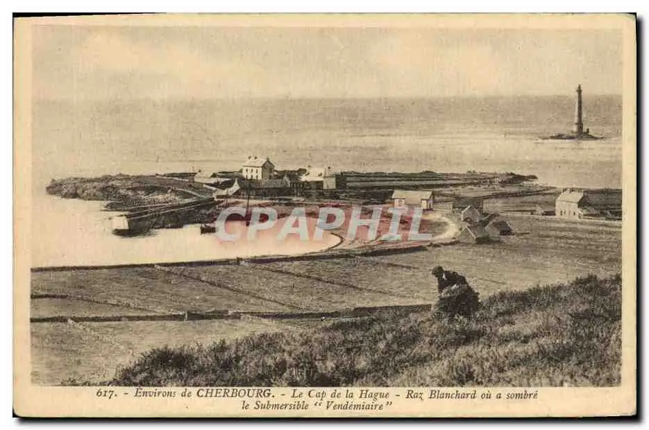 Cartes postales Phare Environs de Cherbourg Le Cap de la Hague Raz Blanchard ou a sombre le submersible Vendermi