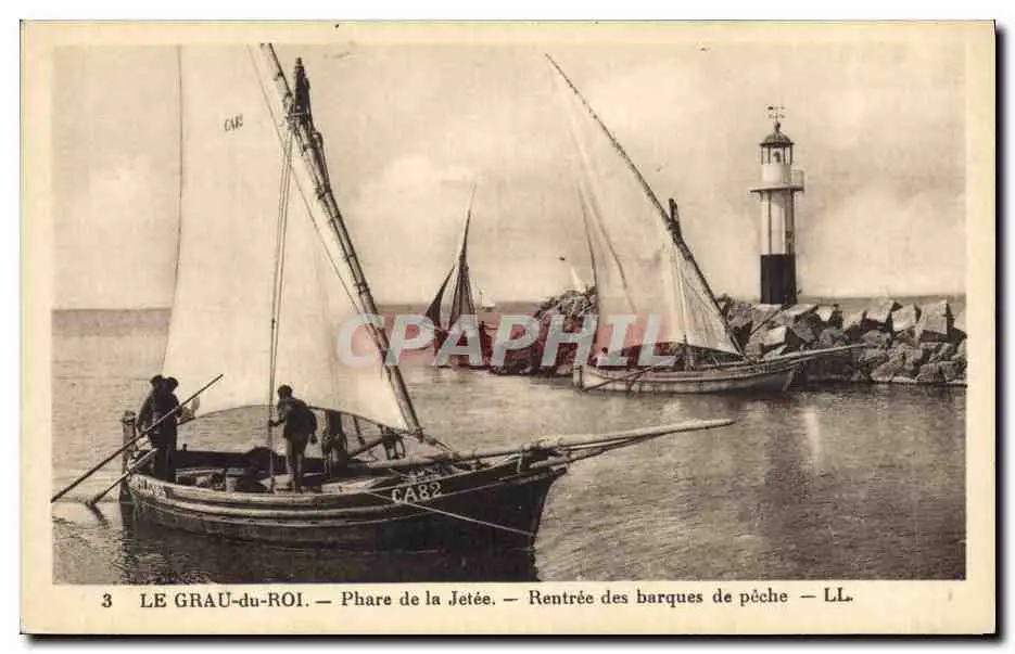 Cartes postales Phare Le Grau du Roi Phare de la jetee Rentree des barques de peche Bateau