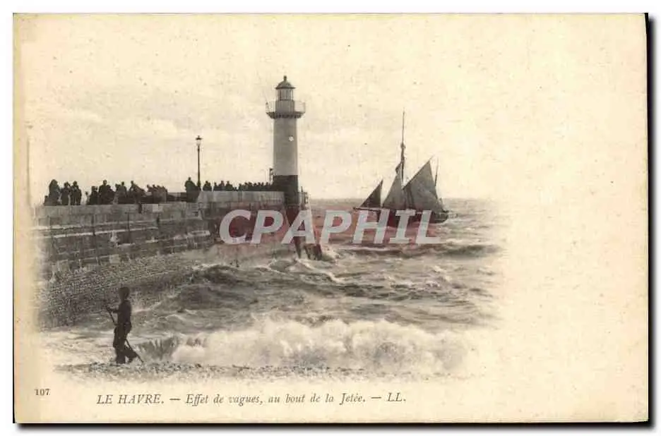 Cartes postales Phare Le Havre Effet de vagues au bout de la jetee Bateau
