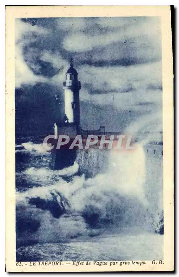 Cartes postales Phare Le Treport Effet de vague par gros temps