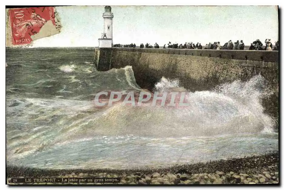 Cartes postales Phare Le Treport La jetee par gros temps