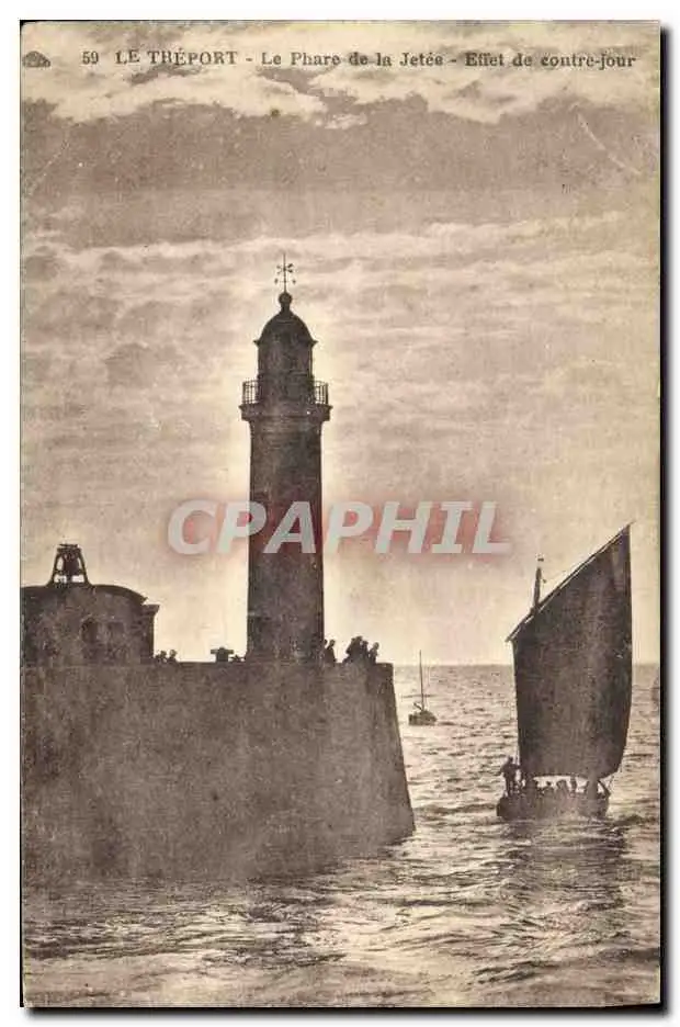 Cartes postales Phare Le Treport Le phare de la jetee Effet de contre jour Bateau