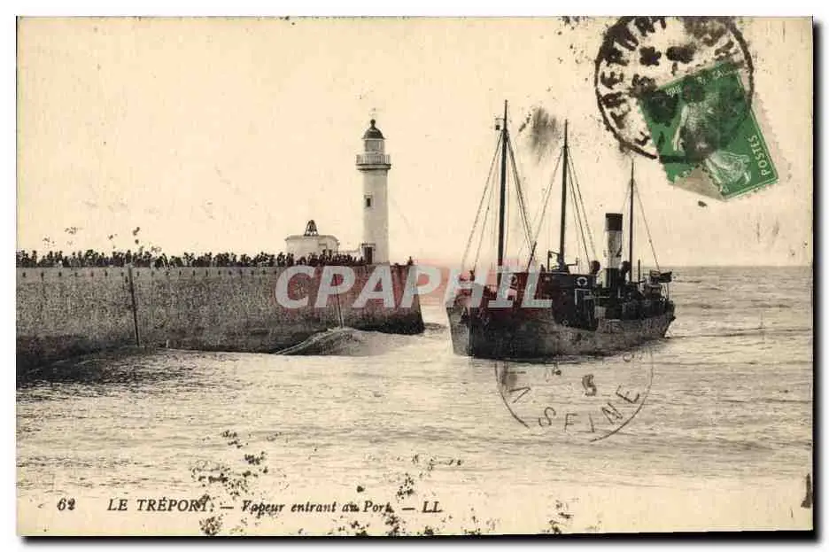 Cartes postales Phare Le Treport Vapeur entrant au port Bateau