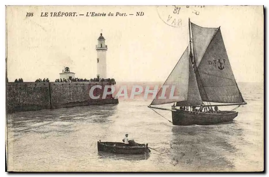 Cartes postales Phare Le Treport l&#39entree du port Bateau