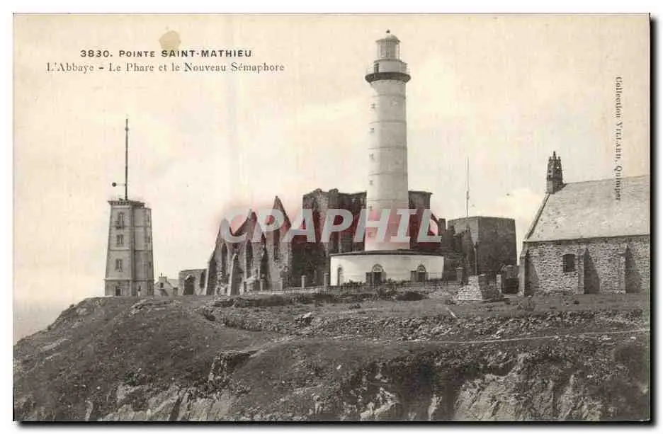 Cartes postales Phare Saint Mathieu L'abbaye Le phare et le nouveau semaphore