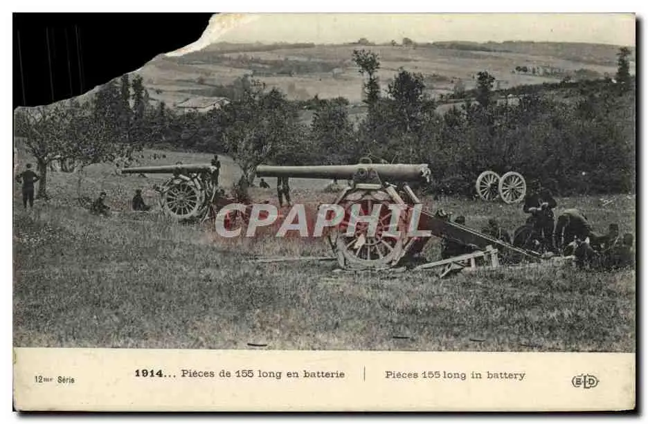 Cartes postales Pieces de 155 Long en batterie Militaria