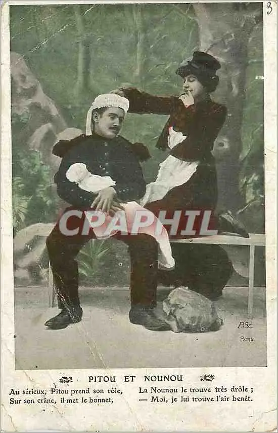 Cartes postales Pitou et Nounou Au Serieux Pitou prend son Role Sur son Crane