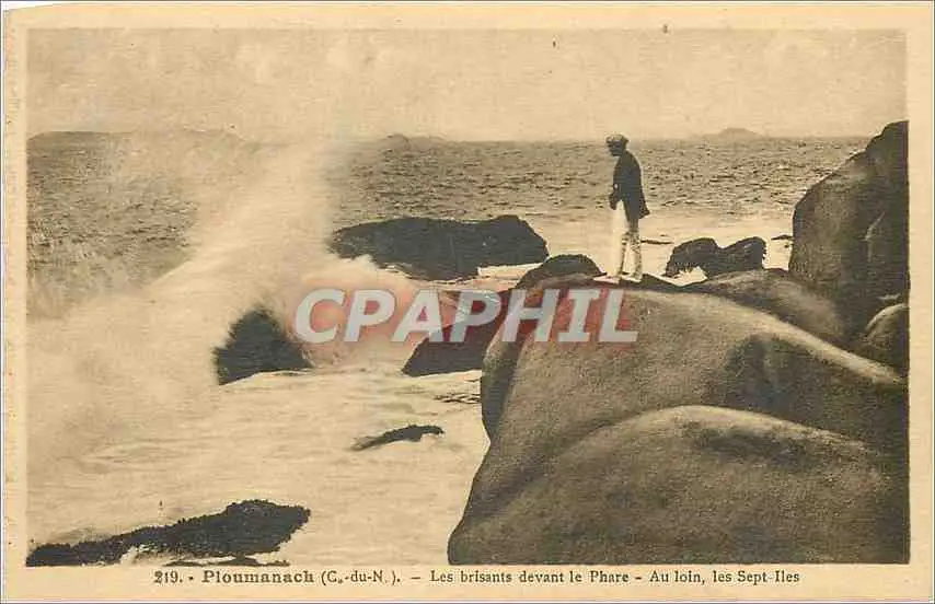 Cartes postales Ploumanach (C du N) Les Brisants devant le Phare Au Loin Les Sept Iles