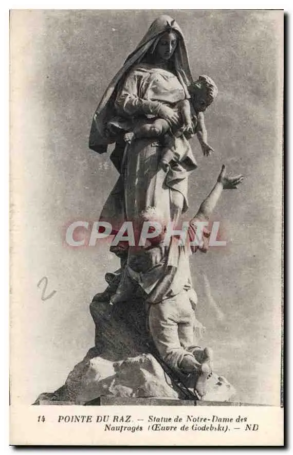Cartes postales Pointe du Raz Statue de Notre Dame des Naufrages Euvre de Godebski