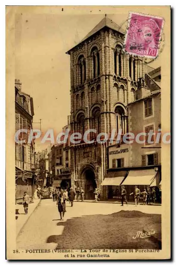 CPA Poitiers La Tour De I'Eglise St Porchaire et la rue Gambetta