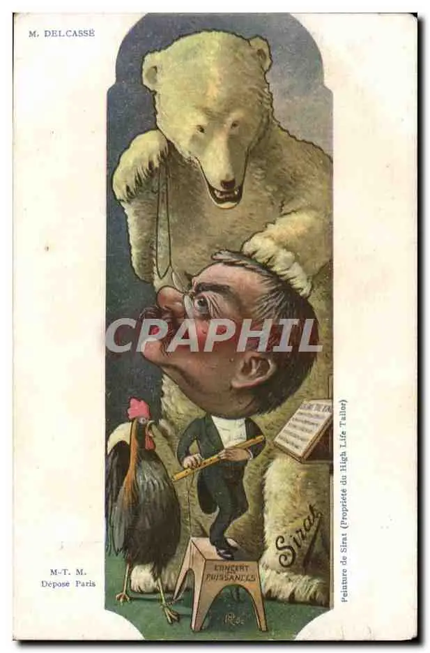 Cartes postales Politique Satirique Delcasse Concer des puissance Ours Coq