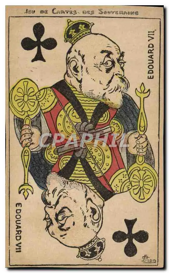 Cartes postales Politique Satirique Jeu de cartes des Souverains Edouard VII Carte a jouer Trefle