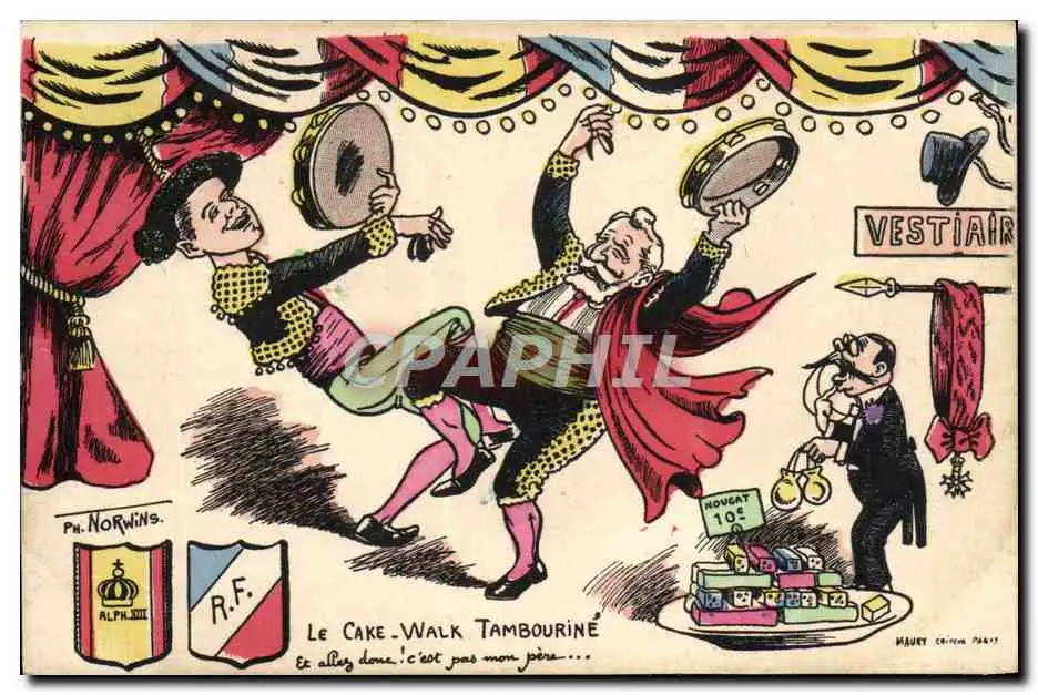 Cartes postales Politique Satirique Le Cake Walk tambourine France Espagne