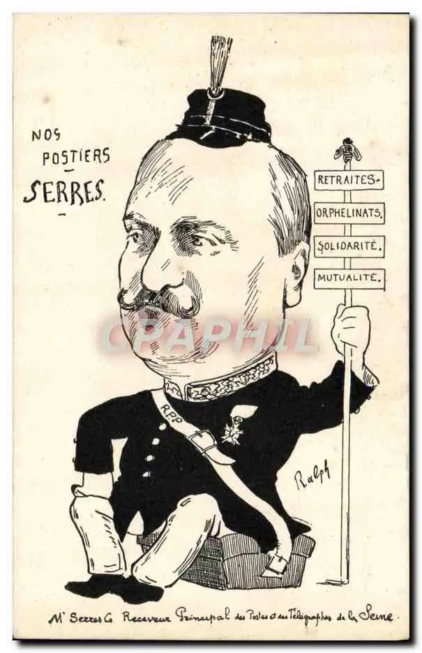 Cartes postales Politique Satirique Nos postiers Seeres Receveur principal des Postes et Telegraphes de la Seine