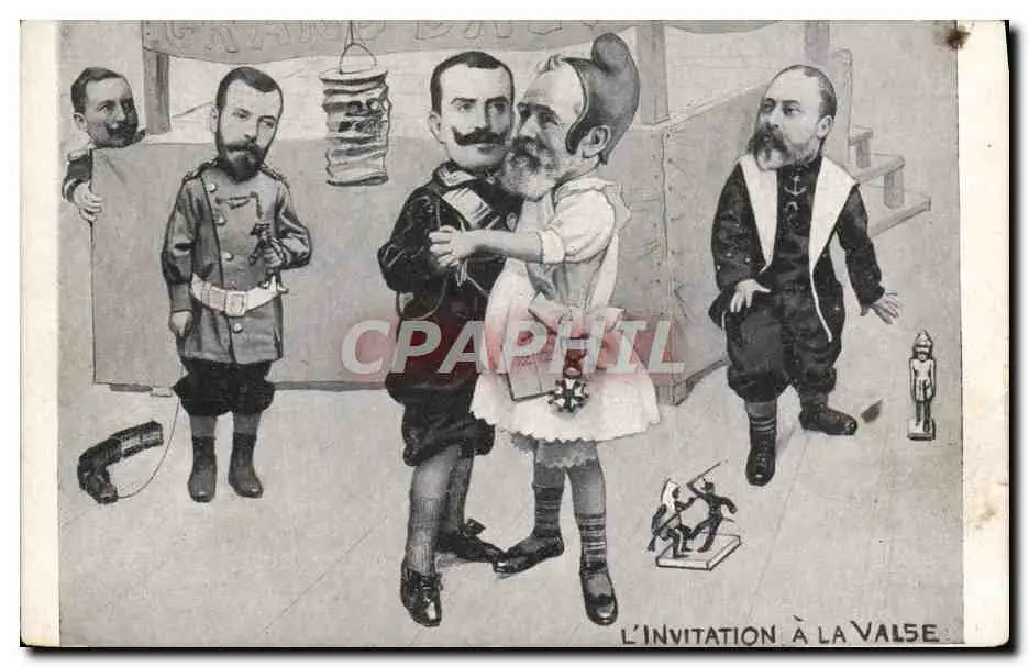 Cartes postales Politique Satirique l&#39invitation a la valse Alphonse XIII Loubet Nicolas II Russie Russia