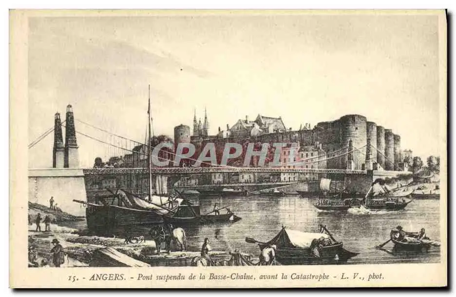 Cartes postales Pont suspendu de la Basse Chaine avant la catastrophe Angers Bateaux