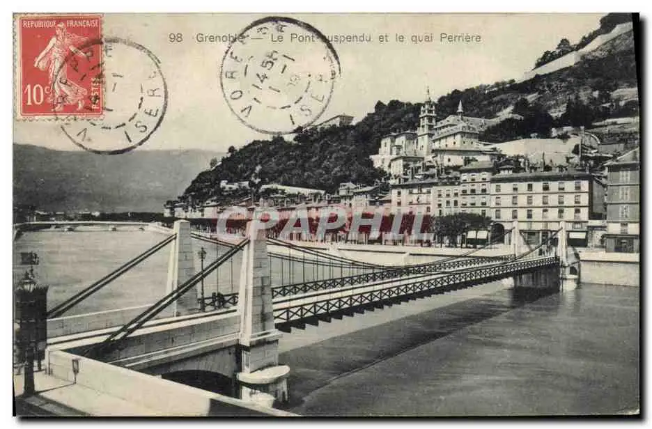 Cartes postales Pont suspendu et le Quai Perriere Grenoble