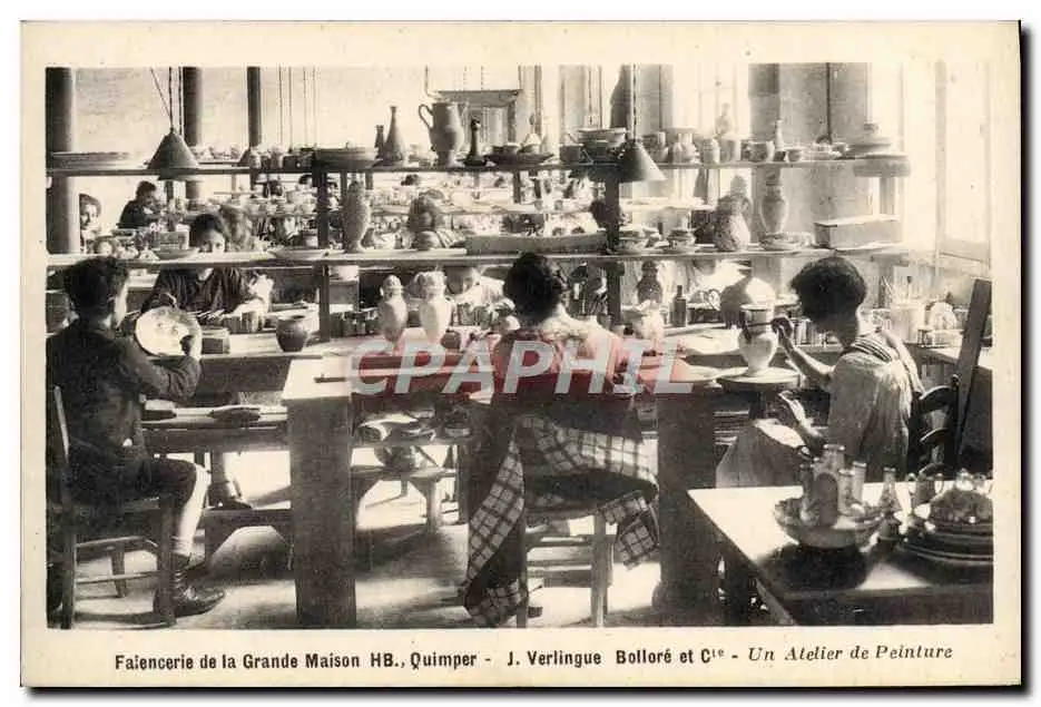 Cartes postales Poterie Ceramique Faiencerie de la grande maison HB Quimper Verlingue Bollore Un atelier de pein