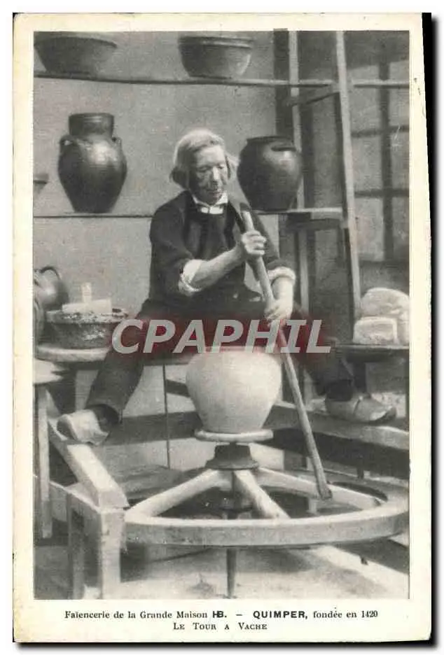 Cartes postales Potier Poterie Faiencerie de la Grande maison HB Quimper Le tour a vache