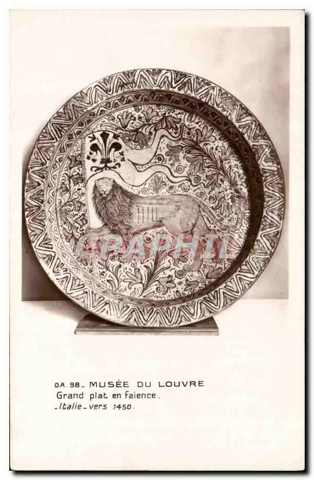 Cartes postales Potier Poterie Paris Musee du Louvre Grand plat en faience Italie Lion
