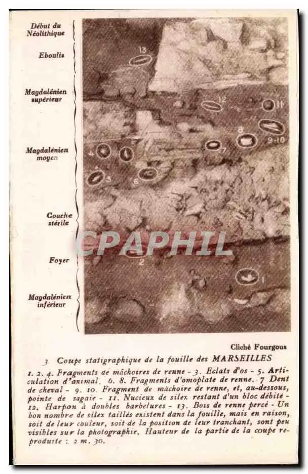 Cartes postales Prehistoire Coupe staigraphique de la fouille des Marseille