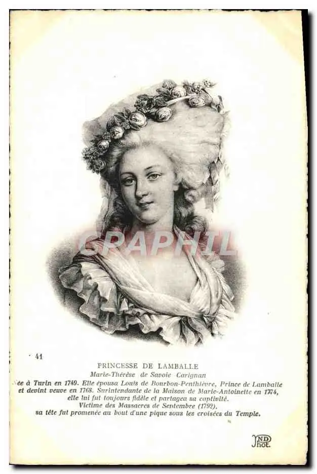 Cartes postales Princesse de Lamballe Marie therese de Savoie Carignan