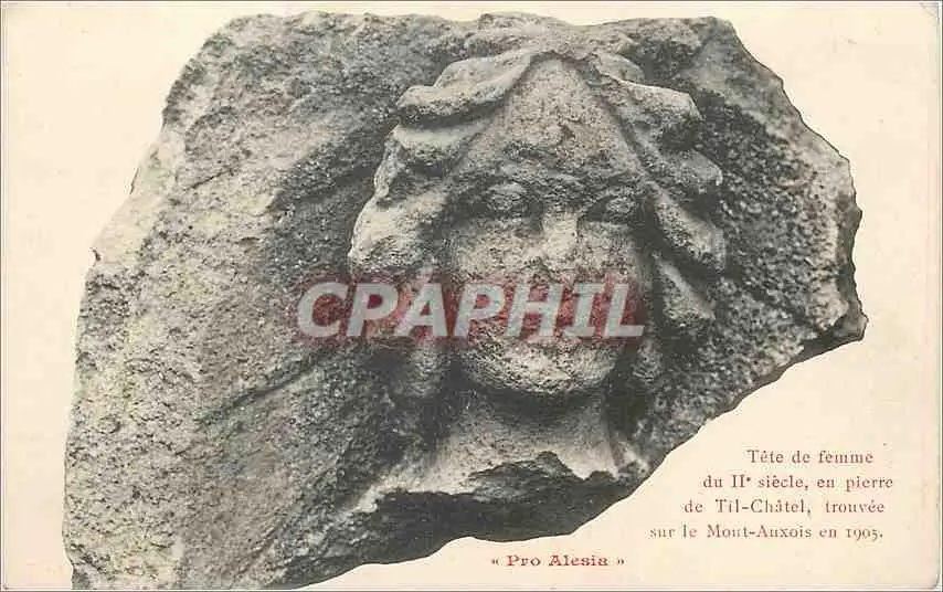 Cartes postales Pro Alesia Tete de femme du IIe siecle en pierre de Til-Chatel trouvee sur le Mont-Auxois en 190