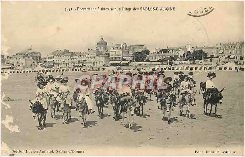 Cartes postales Promenade a anes sur la Plage des Sables d'Olonne Ane Donkey