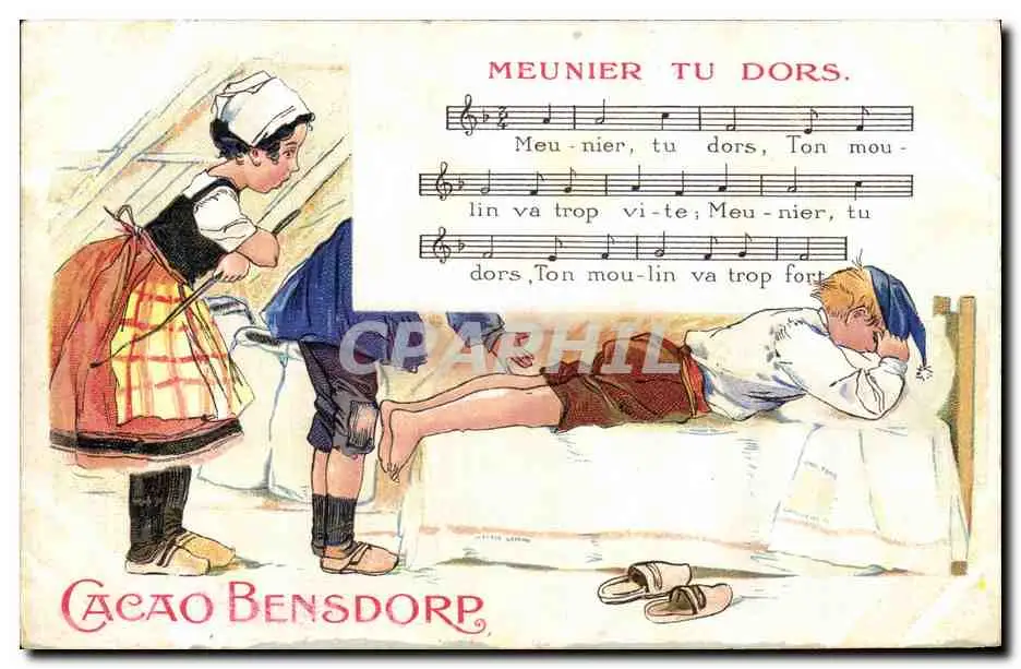 Cartes postales Publicite Cacao Bensdorp Meunier tu dors