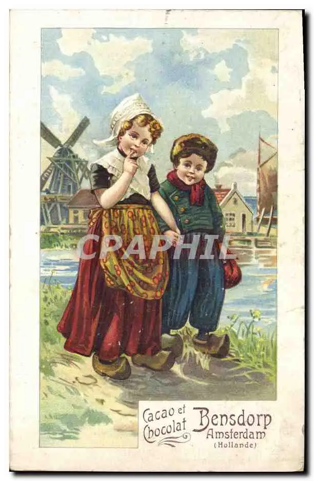 Cartes postales Publicite Cacao et Chocolat Bensdorp Amsterdam Enfants Moulin a vent