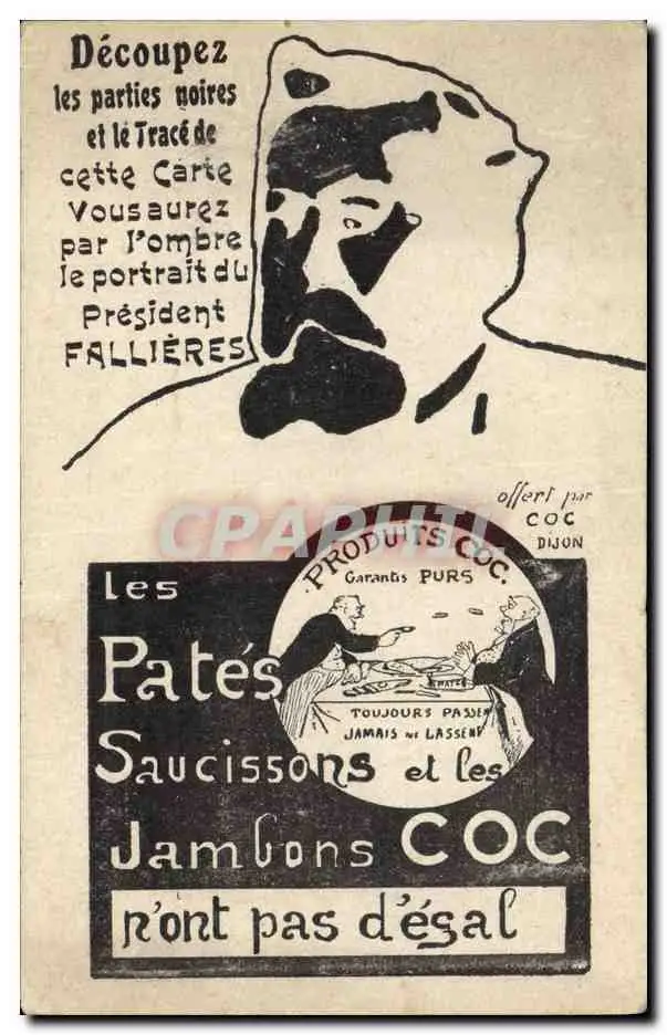 Cartes postales Publicite Pates Saucissons Jambons Coc President Fallieres