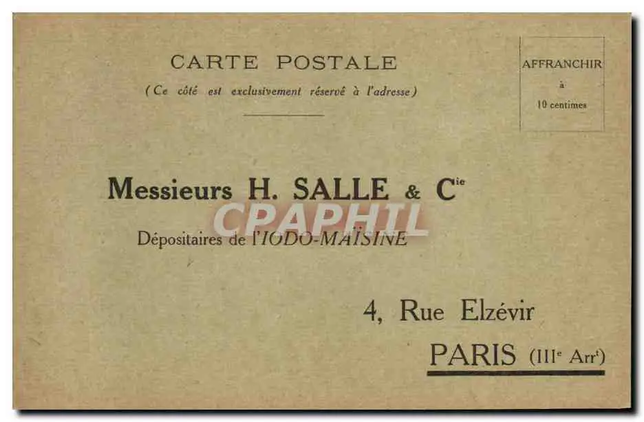 Cartes postales Publicite Salle Iodo Maisine Rue Elzevir Paris 3eme
