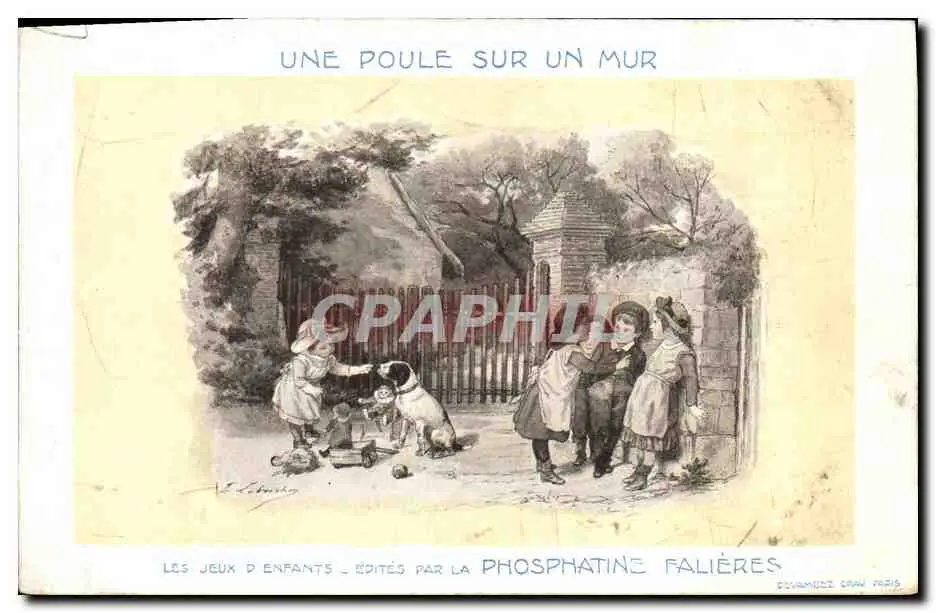 Cartes postales Publicite Une poule sur un mur Jeux d'enfants Phosphatine Falieres