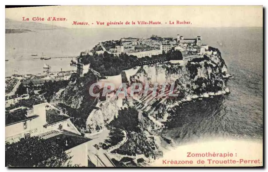 Cartes postales Publicite Zomotherapie Kreazone de Trouette Perret Monaco Vue generale de la Ville haute Le roch